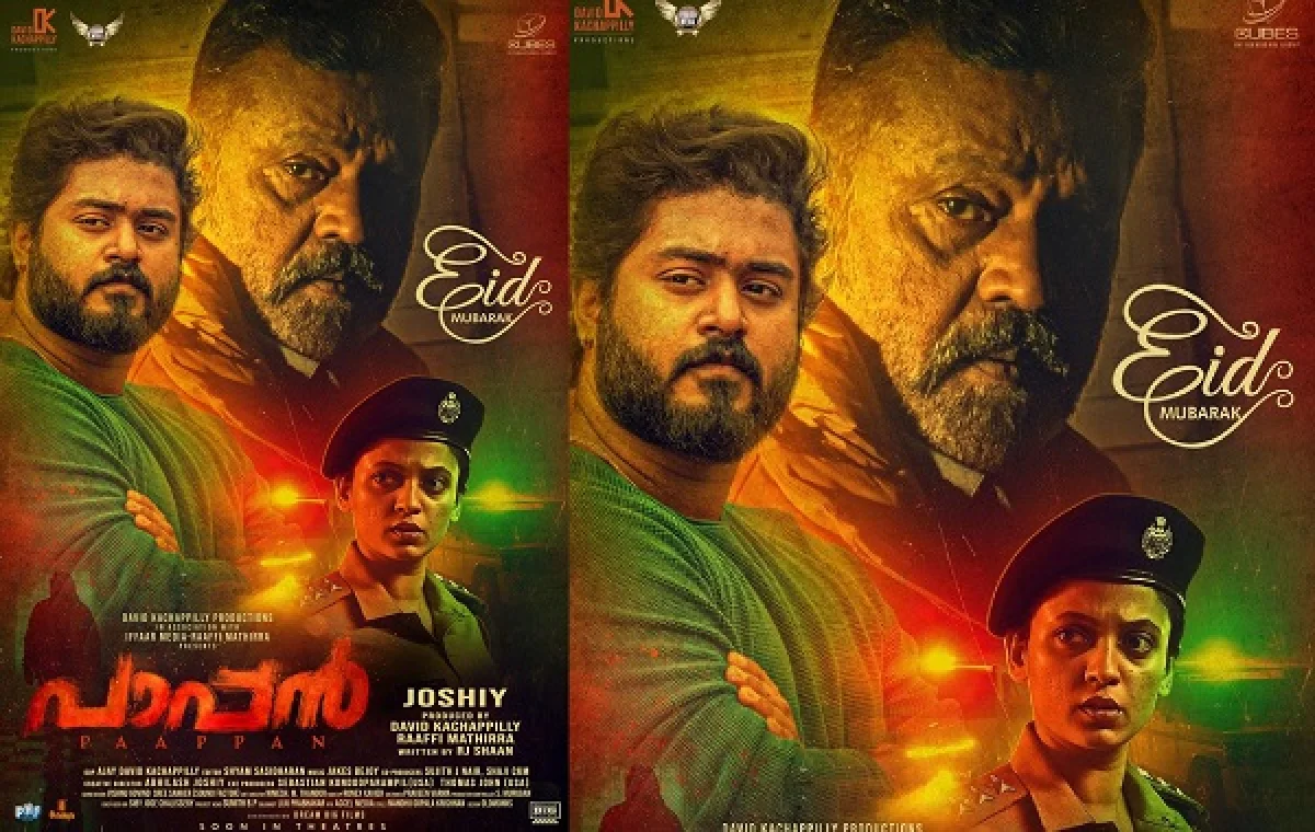 സുരേഷ് ഗോപിയുടെ 'പാപ്പന്' പ്രദര്ശനത്തിന് ഒരുങ്ങുകയാണ്.ജോഷി സംവിധാനം ചെയ്ത ചിത്രത്തിലെ പുതിയ പോസ്റ്റര് ശ്രദ്ധ നേടുന്നു. സുരേഷ് ഗോപിയുടെ പിറകിലായി ഗോകുല് നില്ക്കുന്ന പോസ്റ്ററുകളാണ് നേരത്തെ പുറത്തുവന്നതില് കൂടുതലും. ഇപ്പോഴിതാ അതില്നിന്നും മാറ്റി സുരേഷ് ഗോപിയുടെ മുന്നില് ഗോകുല് കൊണ്ടുവന്നിരിക്കുകയാണ് നിര്മ്മാതാക്കള്.ഈദ് മുബാറക്ക് ആശംസകളുമായിട്ടാണ് ചിത്രത്തിന്റെ പോസ്റ്റര് പുറത്തുവിട്ടിരിക്കുന്നത്.