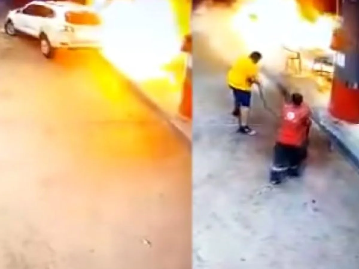 എന്തു ചെയ്യണമെന്നറിയാതെ പമ്പിലെ ജീവനക്കാർ തരിച്ചുനിന്നപ്പോൾ മഞ്ഞക്കുപ്പായം ധരിച്ചെത്തിയ ഒരു യുവാവ് ഓടിയെത്തി ഫയർ എസ്റ്റിഗ്വിഷൻ എടുത്ത് തീ അണക്കാൻ തുടങ്ങി. അപ്പോഴേക്കും ആളിപ്പടർന്ന് തീ അത്ര പെട്ടന്ന് അണക്കാൻ സാധിക്കുമായിരുന്നില്ല. പെട്ടന്ന് പമ്പലെ ജീവനക്കാർ സഹായിക്കാ എത്തി. ഓരോ സിലിണ്ടർ തീരുന്നതിനനുസരിച്ച് അടുത്തത് എട്ടുത്ത് പ്രയോഗിച്ചു.