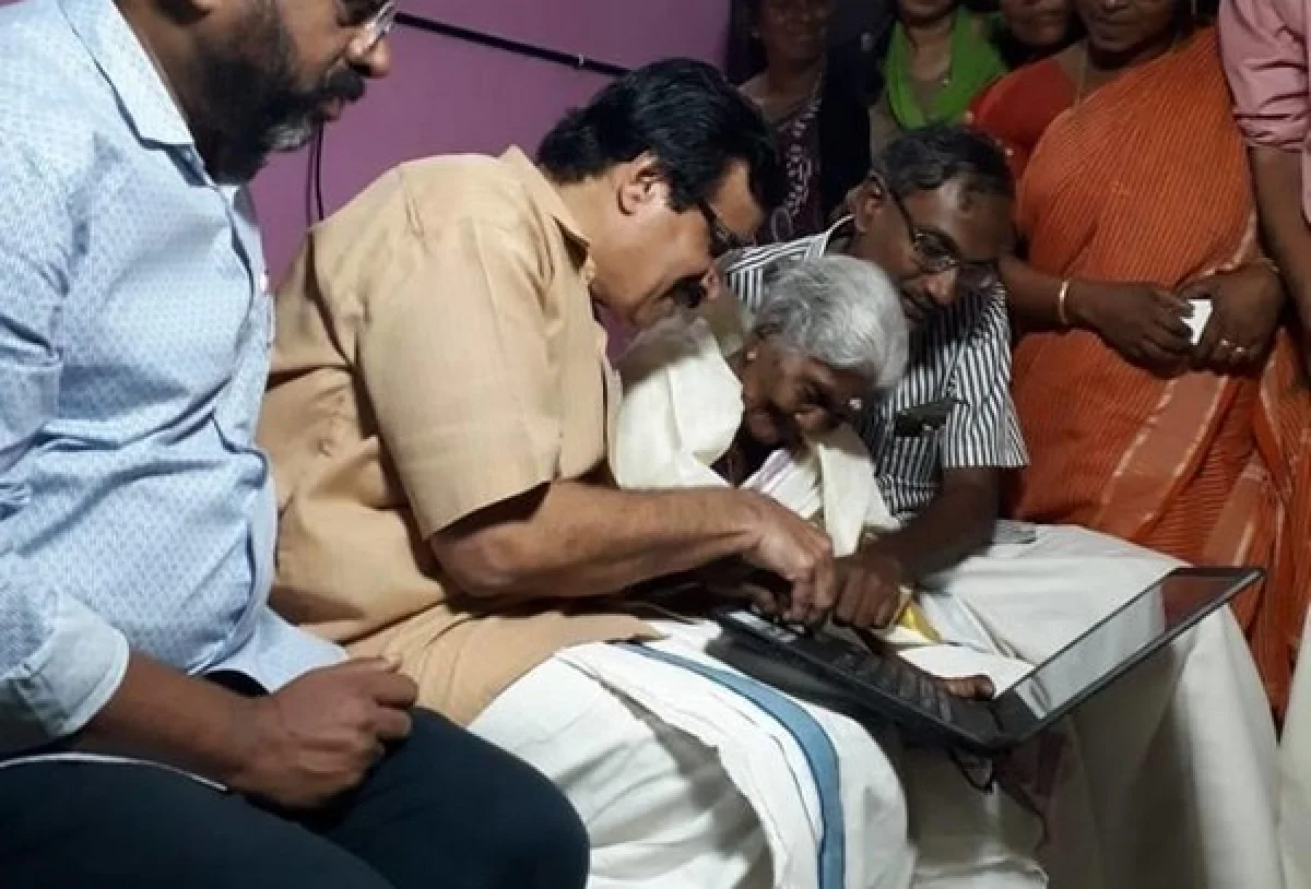 തന്റെ പേര് ലാപ്ടോപിൽ ടൈപ്പ് ചെയ്യുന്നതിന് ലാപ്ടോപ് ഓണാക്കി നൽകാമോ എന്നായിരുന്നു സമ്മനം ലഭിച്ചശേഷം കാർത്തിയായനിയമ്മ മന്ത്രിയോട് ചോദിച്ചത്. അമ്മയുടെ ആവശ്യപ്രകാരം മന്ത്രി കമ്പ്യൂട്ടർ ഓണാക്കി നൽകിയതോടെ. കാർത്തിയായനിയമ്മ സുക്ഷമതയോടെ സ്വന്തം പേര് ആദ്യമായി ലാപ്ടോപ്പിൽ ടൈപ്പ് ചെയ്തു.