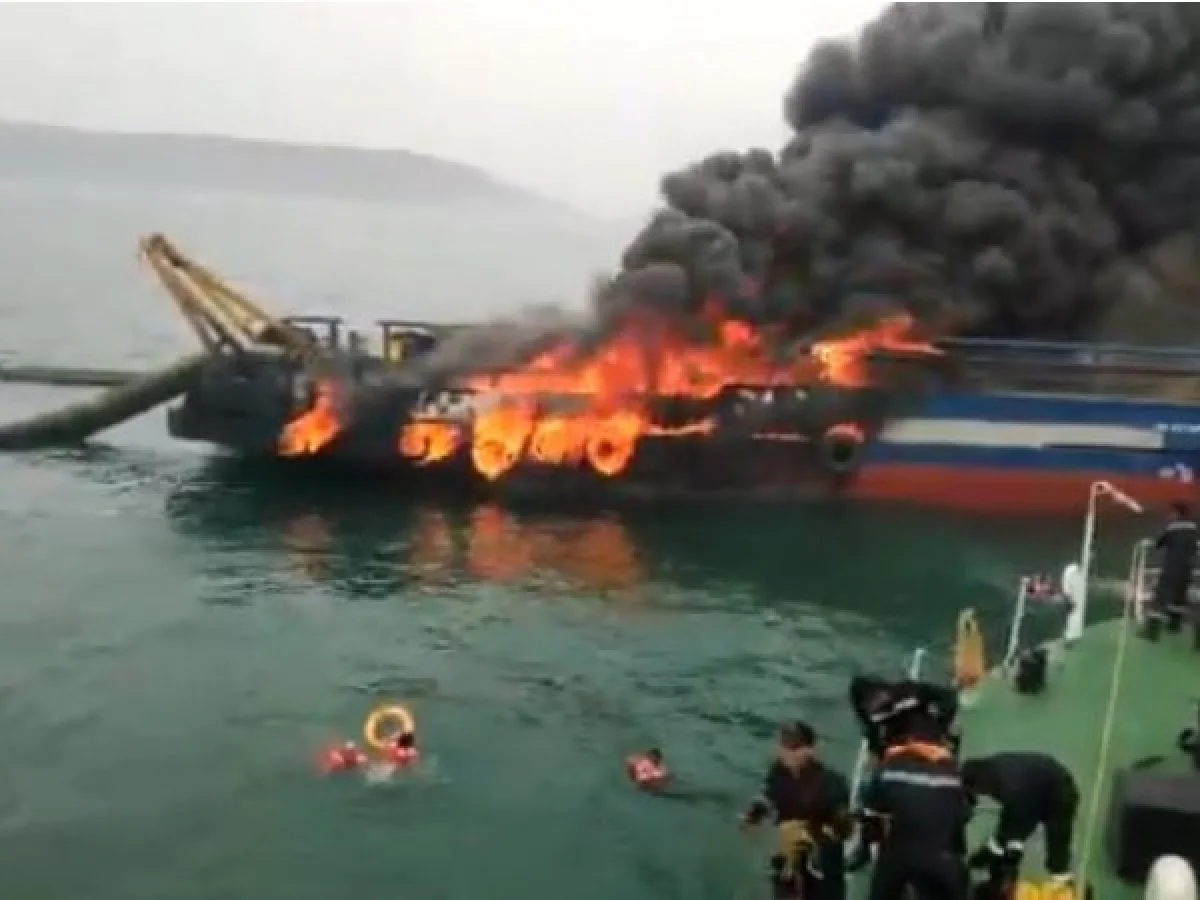 ഇന്ന് രാവിലെയായിരുന്നു സംഭവം വലിയ സ്ഫോടനത്തെ തുടർന്ന് വിശാഖപട്ടണം തീരക്കടലിൽ ഉണ്ടായിരുന്ന കോസ്റ്റൽ ജാഗ്വർ എന്ന കപ്പലിന് തീപിടിക്കുകയായിരുന്നു. അതിവേഗം തീ കപ്പലിന്റെ മറ്റു ഭാഗങ്ങളിലേക്ക് പടരാൻ തുടങ്ങിയതോടെ കപ്പലിലുണ്ടായിരുന്ന ജീവനക്കാർ കടലിലേക്ക് എടുത്തുചാടി.