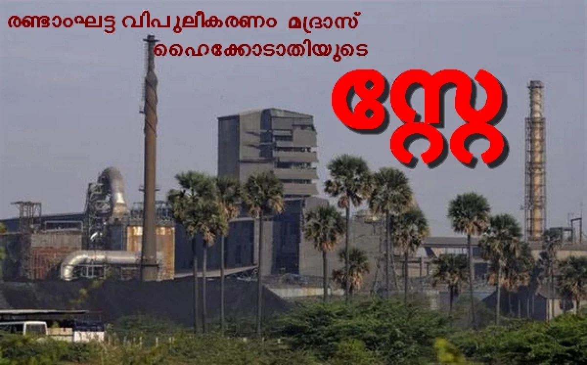 തൂത്തുക്കുടി സ്റ്റെർലൈറ്റ് കോപ്പർ യുണിറ്റിന്റെ വിപുലീകരണത്തിന് മദ്രാസ് ഹൈക്കോടതിയുടെ സ്റ്റേ. മദ്രാസ് ഹൈക്കോടതിയുടെ മധുര ബെഞ്ചിന്റേതാണ് നടപടി. സ്റ്റെർലൈറ്റ് യൂണിറ്റിന്റെ രണ്ടാം ഘട്ട വിപൂലീകരണ പ്രവർത്തനങ്ങളാണ് കോടതി തടഞ്ഞിരിക്കുന്നത്.