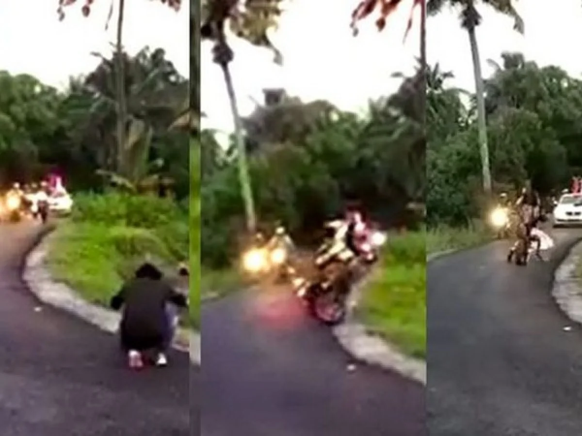 വിവാഹഘോഷയാത്രക്കിടെ നടത്തിയ അഭ്യാസപ്രകടനം പാളി; യുവാവ് റോഡിലും ബൈക്ക് വയലിലും