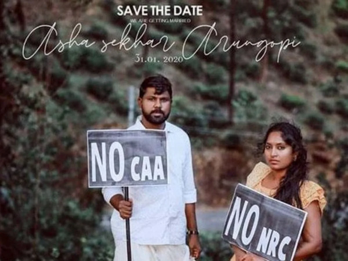 സിഎഎ പ്രക്ഷോഭം: വേറിട്ടൊരു സേവ് ദ ഡേറ്റ്; പ്രതിഷേധവുമായി പ്രതിശ്രുത വരനും വധുവും