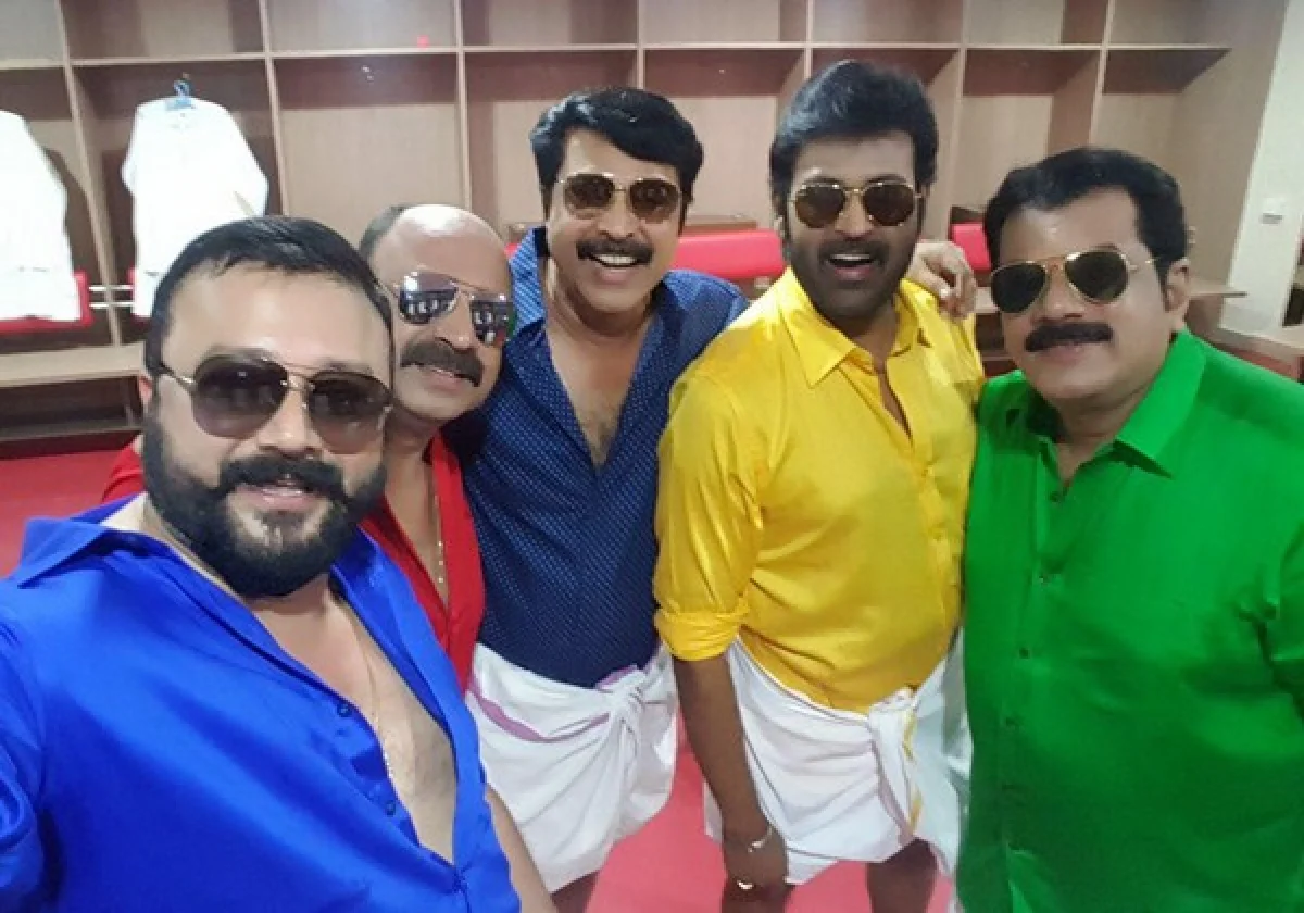 ഡാന്സിന്റെ കാര്യത്തില് ഏറെ പഴികേട്ട മമ്മൂട്ടിയുടെ ഇത്തവണത്തെ ഡാൻസ് പക്ഷേ, പ്രേക്ഷകരെ ഞെട്ടിക്കുന്നതും ആവേശം കൊള്ളിക്കുന്നതും ആയിരുന്നു. യുവതാരമായ അജു വര്ഗീസും ചിത്രം ഫേസ്ബുക്കിലൂടെ പ്രചരിപ്പിച്ചിരുന്നു. ഈ ചിത്രത്തിന് പിന്നിലെ കഥയെക്കുറിച്ചും അജു വ്യക്തമാക്കിയിട്ടുണ്ട്. മമ്മൂട്ടിയുടെ സഹോദരന്മാരായി വിവിധ ചിത്രങ്ങളില് തകര്ത്തഭിനയിച്ചവരാണ് ഇവരൊക്കെ.