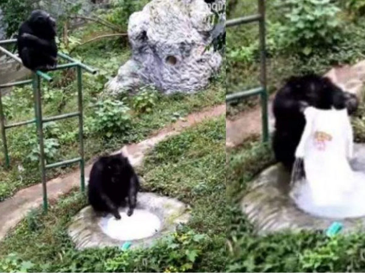 മൃഗശാലയിലിരുന്ന് വസ്ത്രങ്ങൾ കഴുകുന്ന ചിമ്പാൻസിയാണ് ഇപ്പോൾ സോഷ്യൽ മീഡിയയിൽ താരമായിക്കൊണ്ടിരിക്കുന്നത്. തെക്കുപടിഞ്ഞാറൻ ചൈനയിലെ മൃഗശാലയിലാണ് സംഭവം. 18 വയസുള്ള ആൺചിമ്പാൻസിയായ യുഹുയിയാണ് ഒരു വെളുത്ത ടി ഷർട്ടു ബ്രഷും ബാർ സോപ്പും ഉപയോഗിച്ച് കഴുകുന്നത്.